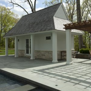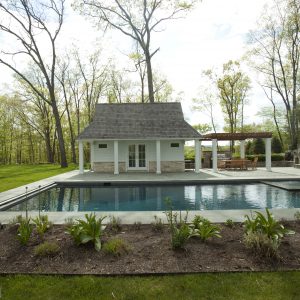 Nestled in the scenic hills of Roxbury, this weekend retreat takes full advantage of its tranquil, natural surroundings. The property features extensive landscaping and a pool with a large patio, pergola, and pool house. The residence itself keeps to a small footprint and features fine craftsmanship and architectural details.