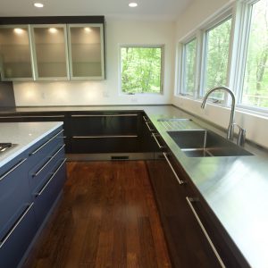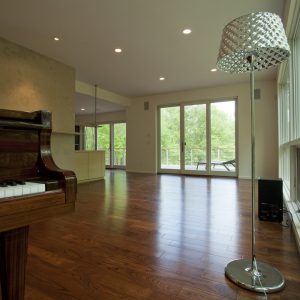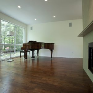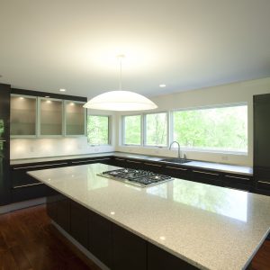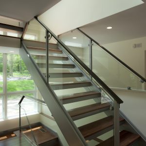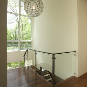 Perhaps the first thing you’ll notice about this stunning home is the beautiful, flat board cedar siding. Built overlooking a small lake, the back of the home features lots of glass and a sprawling cedar deck with custom steel railings to minimize obstructions of the view. The interior features heavy, flush-mount doors, custom built-ins, a steel and glass stairway, and a contemporary kitchen with a large seamless, stainless steel countertop. The lower level also features a custom weathered-steel fireplace.